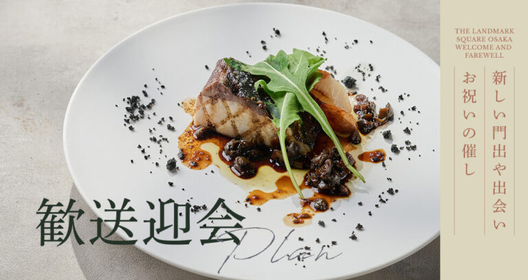 ザ ランドマークスクエア オオサカの忘新年会プラン。旬の食材をふんだんに使ったこだわりの料理は、コース・卓盛・ビュッフェの中から形式をお選び頂けます。料理長が腕を振るう美食の数々が、大切な方との語らいに華を添えます。少人数から大人数まで規模感に応じたアレンジも可能です。ぜひご利用ください。