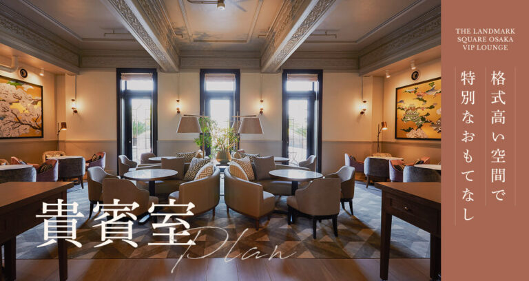 ザ ランドマークスクエア オオサカの貴賓室をご利用いただける特別プランです。かつて天皇を迎え入れる部屋として使用された貴賓室。宴席の格式の高さと、主催者のおもてなしの心を象徴します。重要な接待や記念行事に最適なプランです。