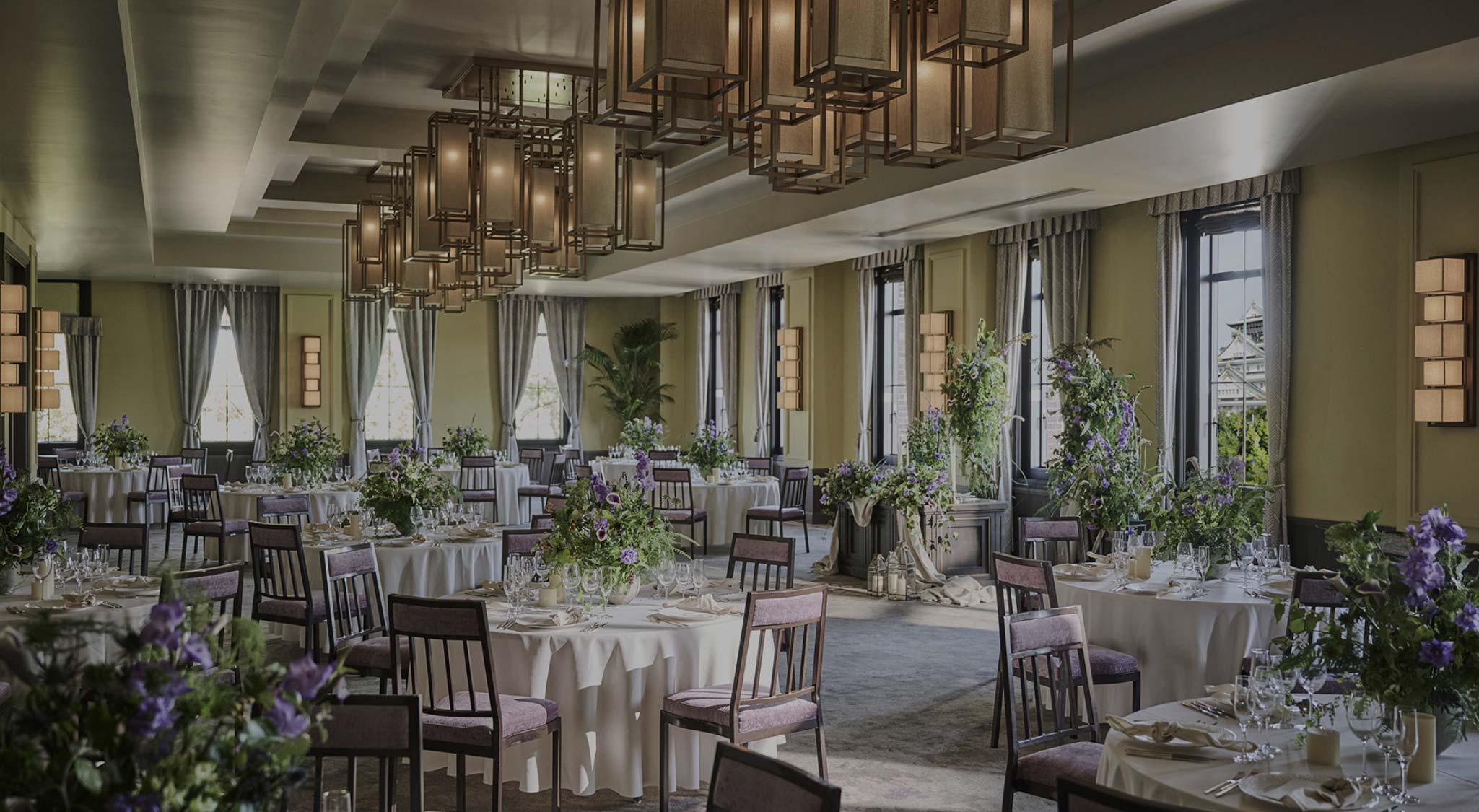 窓から天守閣を一望できる空間で、上質なサービスとシェフこだわりの料理を味わう。