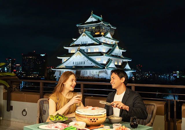 BLUE BIRDS ROOF TOP TERRACE は、大阪の街並みと空を見晴らすルーフトップに広がるレストラン。