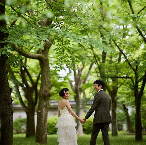 西の丸庭園で緑が青々としている新緑とともに撮影する特別プランです。