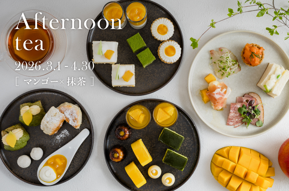 5月~6月は、とろける甘みが魅力の「宮崎県産マンゴー」と、香り豊かな「抹茶」をテーマにした初夏限定のアフタヌーンティーをご用意いたしました。